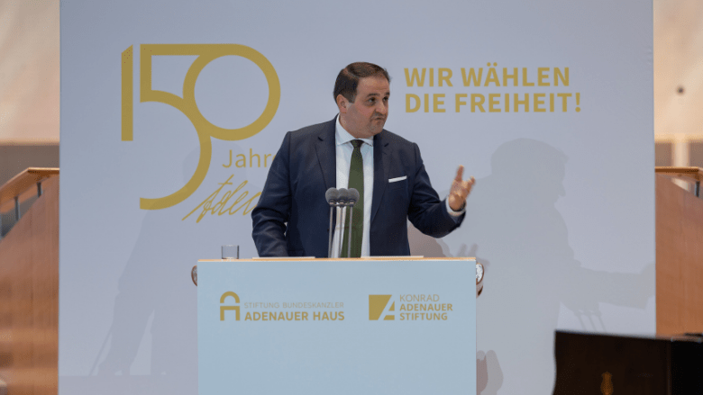 Vor diesem Hintergrund machte Liminski deutlich, dass Adenauers Denken Orientierung für aktuelle politische Herausforderungen bietet: für den Schutz jüdischen Lebens, für die Verantwortung Deutschlands in Europa und für die Notwendigkeit, Freiheit und Sicherheit nicht als gegeben hinzunehmen, sondern aktiv zu sichern.