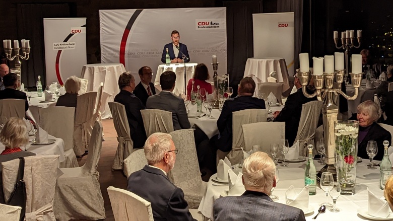Christoph Jansen, Kreisvorsitzender der CDU Bonn, betonte in seiner Begrüßungsrede die wichtige Bedeutung des politischen Engagements für die Gesellschaft und dankte für die jahrzehntelange Unterstützung der Mitglieder.