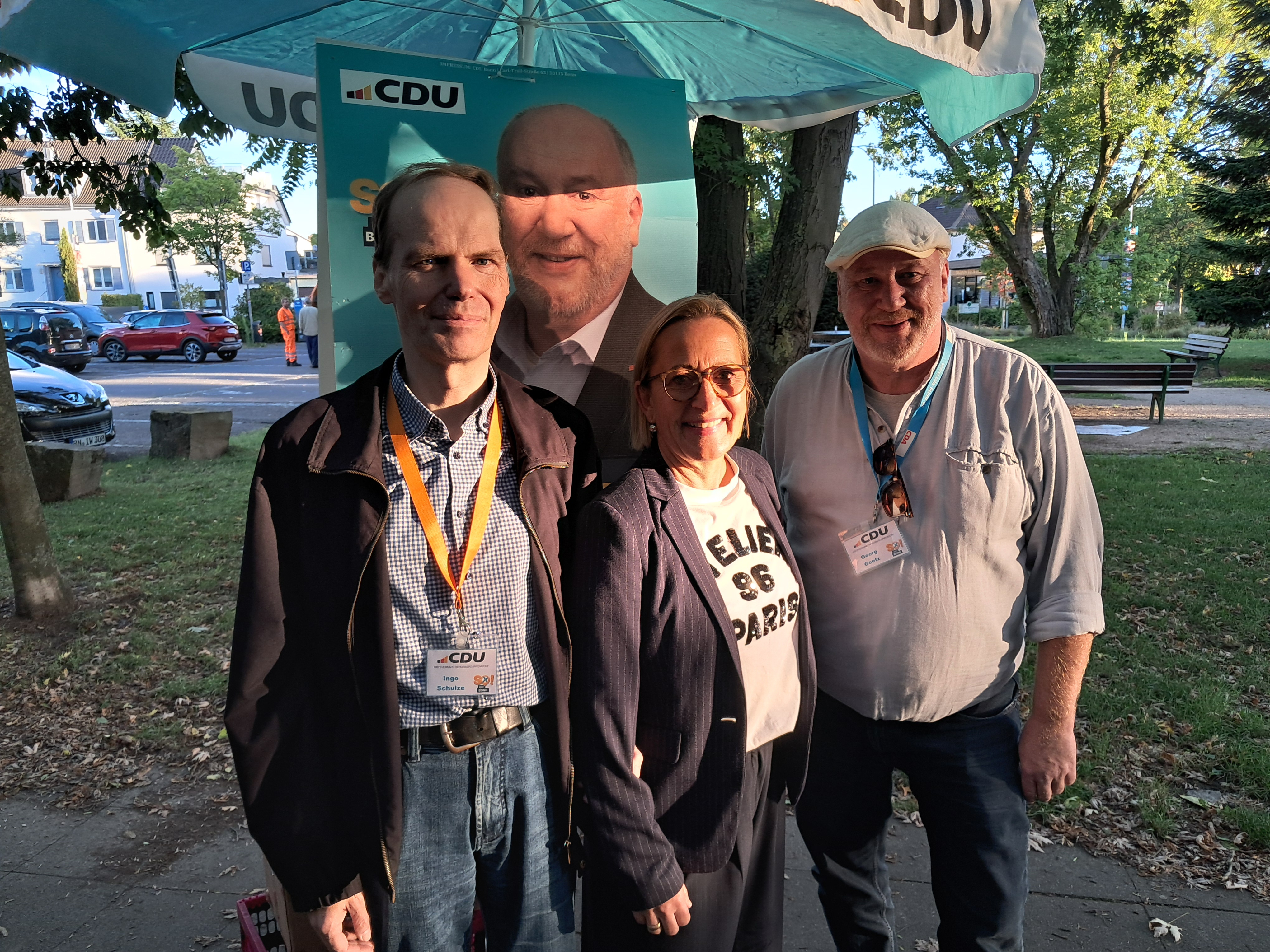Die Bezirksbürgermeisterkandidatin Nicole Bonnie besuchte am 11.09.2025 einen Infostand des CDU OV Venusberg/Ippendorf am Berzheim Platz in Ippendorf. Bürgerinnen und Bürger nutzten die Gelegenheit um Gespräche mit Nicole Bonnie sowie mit dem Stadtverordneten Georg Goetz zu führen. Mitglieder des Vorstands sowie engagierte Mitglieder des Ortsverbands unterstützten die Veranstaltung. Neben Informationsflyern wurden Give-aways wie Blöcke, Stifte, Bälle und Malkreide ausgegeben.