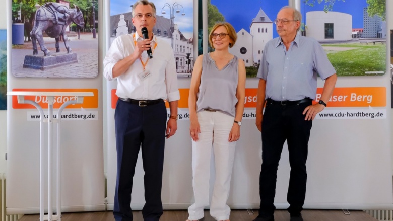 Enno Schaumburg nutzte den Rahmen des Sommertreffs auch, um den ehemaligen Bezirksvorsteher Gerd Lorth zu seiner 50 jährigen Mitgliedschaft in der CDU zu ehren. Weiterhin wurde der Bezirksverordnete und langjährige Vorsitzende der CDU Duisdorf und der CDU Hardtberg Bernhard Schekira für sein besonderes Engagement und seine politischen Aktivitäten in und für den Stadtbezirk Hardtberg, insbesondere für Duisdorf und Medinghoven, mit der Verdienstnadel der CDU ausgezeichnet.